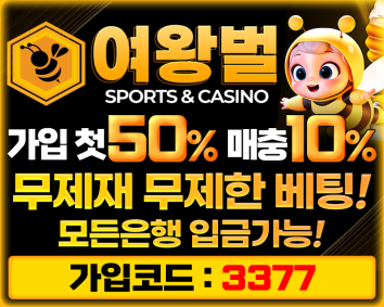전문적인 심사를 통과하여 보증업체로 등록된 여왕벌을 소개해 드립니다. 최고의 자유도와 넉넉한 베팅한도로 유명한 여왕벌은 해외 API를 활용하여 국내 최고 배당을 책정한 메이저놀이터인데요. 또한 최신 유럽형 솔루션 도입으로 짜릿한 라이브 베팅과 더불어 한층 강화된 보안과 베팅 편의성을 제공하고 있습니다. 특히 각종 한도 무제한, 모든 베팅 무제재, 무한 콤프 및 재입플 등의 파격적인 혜택을 전 레벨 회원에게 제공함으로서 그야말로 꿀맛 베팅사이트로서의 왕좌에 올랐습니다!