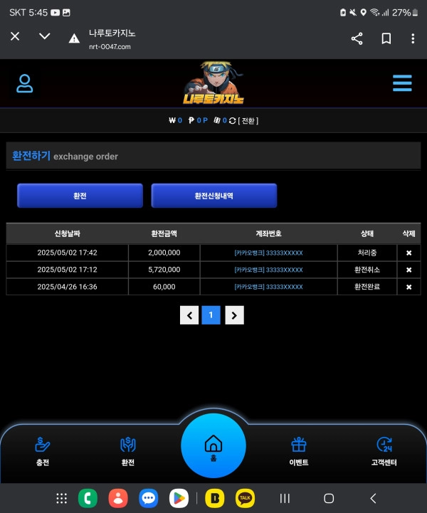 피해자 C씨는 2025년 5월 2일, '나루토 카지노'에서 슬롯 게임을 주로 이용하셨다고 합니다. 슬롯 이벤트 머니를 지급받아 베팅했으나, 사이트 측은 이를 빌미로 '규정 미숙지'를 주장하며 당첨금 지급을 거부했습니다. C씨는 572만원의 당첨금 중 고작 200만원만을 돌려받았고, 나머지 372만원은 부당하게 몰수 처리되었습니다.