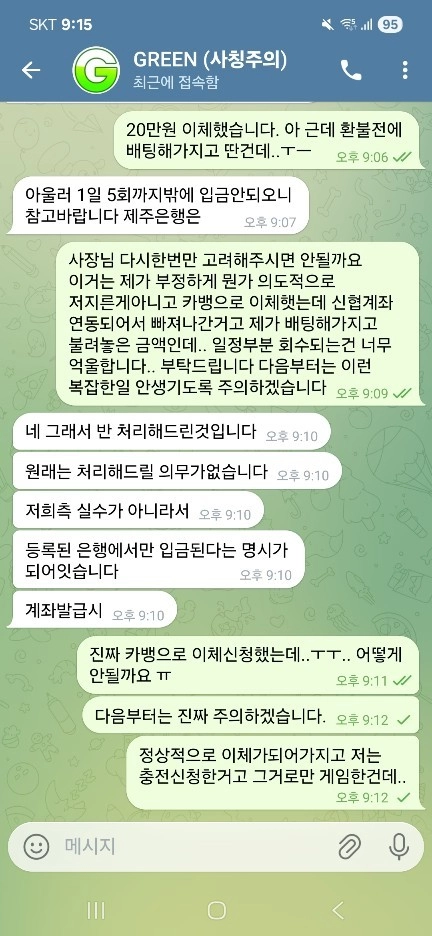첫 충전금 오인출 및 당첨금 회수 수법 한 이용자가 10만 원을 충전하여 배팅을 시작했고, 운 좋게 80만 원까지 당첨금을 불렸습니다. 그런데 사이트 측에서 갑자기 이용자의 계좌로 10만 원을 돌려주면서, '처음 충전한 금액이 제대로 등록되지 않았다'는 황당한 설명을 내놓았습니다. 이에 이용자가 다시 10만 원을 입금하자, 사이트는 해당 충전금으로 발생한 40만 원의 당첨금을 '부당 이득'이라며 즉시 회수해 버렸습니다. 사이트에서 정상적으로 제공된 포인트로 당첨된 금액임에도 불구하고, 일방적인 회수 조치를 취하며 이용자를 기만하는 전형적인 먹튀 수법입니다.