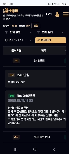 체코(cz-80.com)는 이용자 자금을 제대로 보호하지 않으며 악질적인 먹튀 수법을 사용하는 사이트입니다. 적발된 피해 사례를 고려하면 절대 신규 가입이나 충전을 하지 말고, 이미 이용 중이라면 즉시 서비스 이용을 중단해야 합니다.