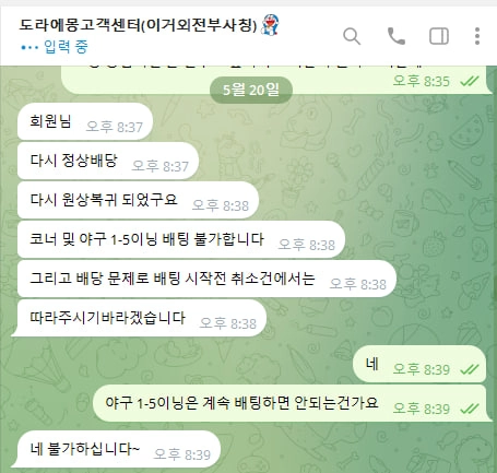 또한, 제보자께서는 사이트 전체 배당이 하락한 것을 확인하고 문의했으나, 모든 회원에게 동일하게 적용된 변경이라는 설명을 들었지만, 실제로는 본인에게만 배당이 낮게 적용된 사실을 지인을 통해 확인하셨다고 합니다. 거액을 잃을 때는 적극적으로 응대하던 사이트가 수익을 내자 태도를 바꾸고, 배당 문제에 대해 항의하자 정상화를 약속했음에도 다시 충전 후 배당을 재차 하락시키며 추가 베팅을 요구하는 등 신뢰할 수 없는 운영을 보였다고 강조하셨습니다.