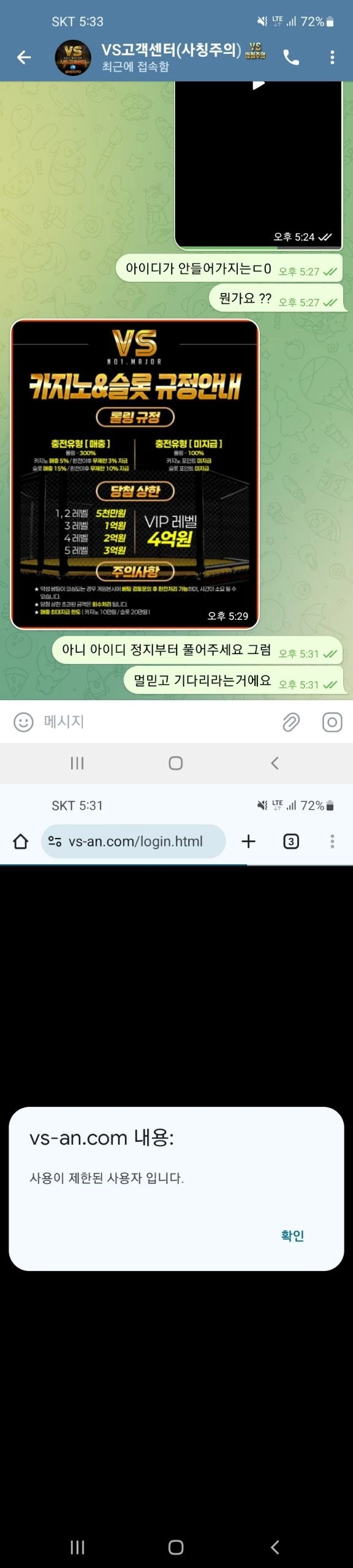 vs벳 144만원 먹튀사이트 확정 절대 이용 금지!
